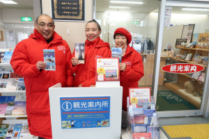 流氷観光シーズンのバスターミナルやお祭り会場に臨時観光案内所を開設して観光客をおもてなしします。